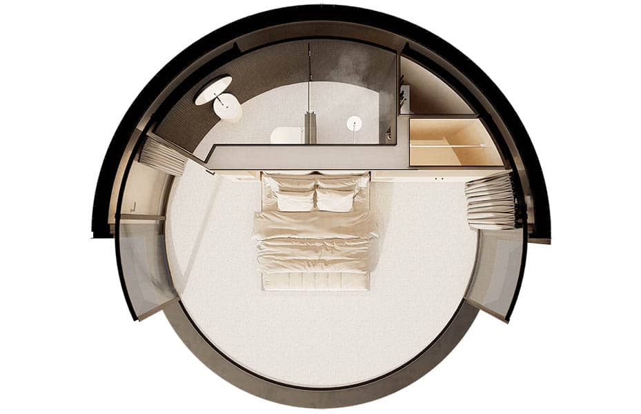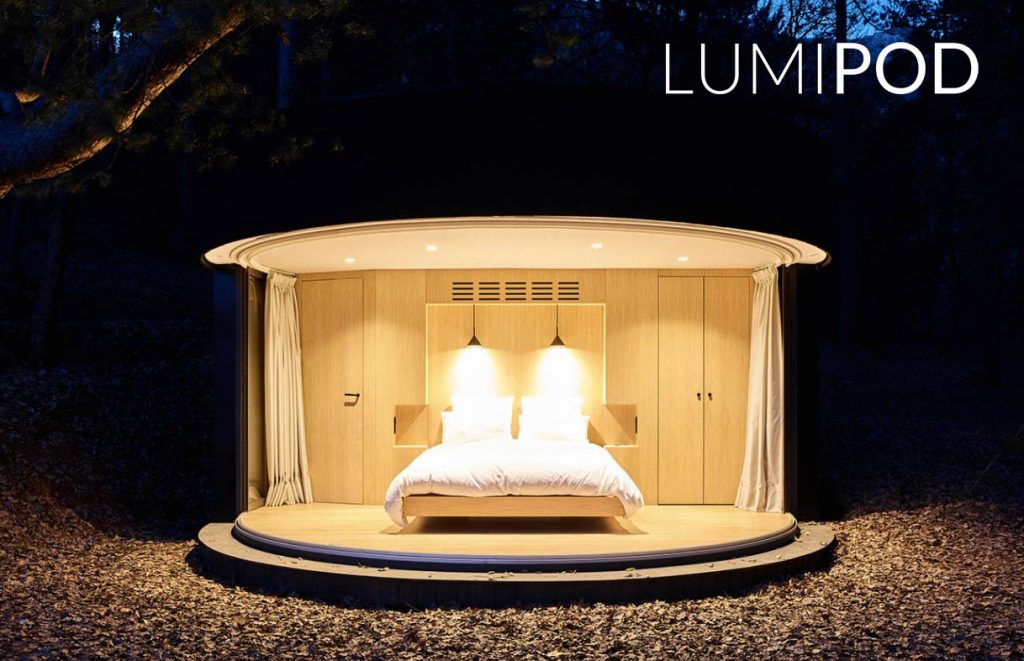 LUMIPOD ist in 3 verschiedenen Größen erhältlich. Vom 18 m² großen minimalistischen Hotelzimmer bis zum 36 m² großen Familienkokon.